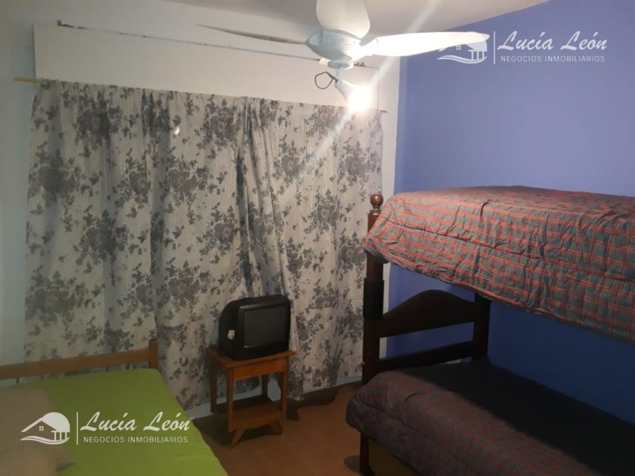 Departamento en segundo piso por escalera, de 3 ambientes con cochera. Siendo totalmente apto para 6 personas, la propiedad dispone de 2 cómodos dormitorios, uno con cama matrimonial y otro con 4 camas de una plaza. El baño es nuevo con agua presurizada, balcón con parrilla y una cocina completa con gas envasado, también se goza de un termotanque eléctrico en la propiedad.